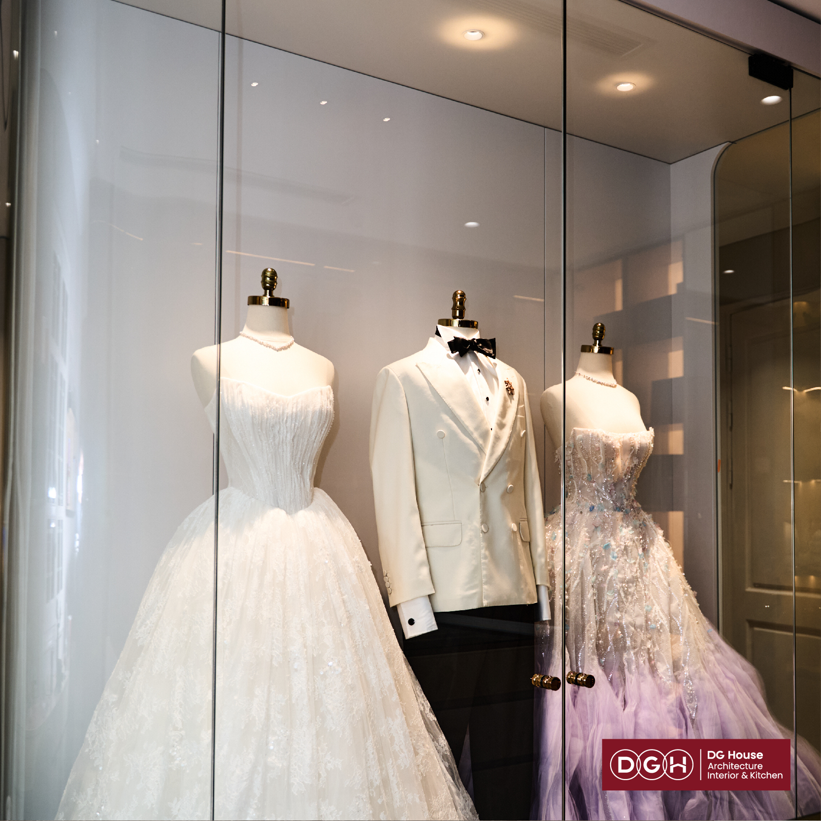2. Điểm nhấn độc bản: Tủ trưng bày "Lễ phục ngày chung đôi"