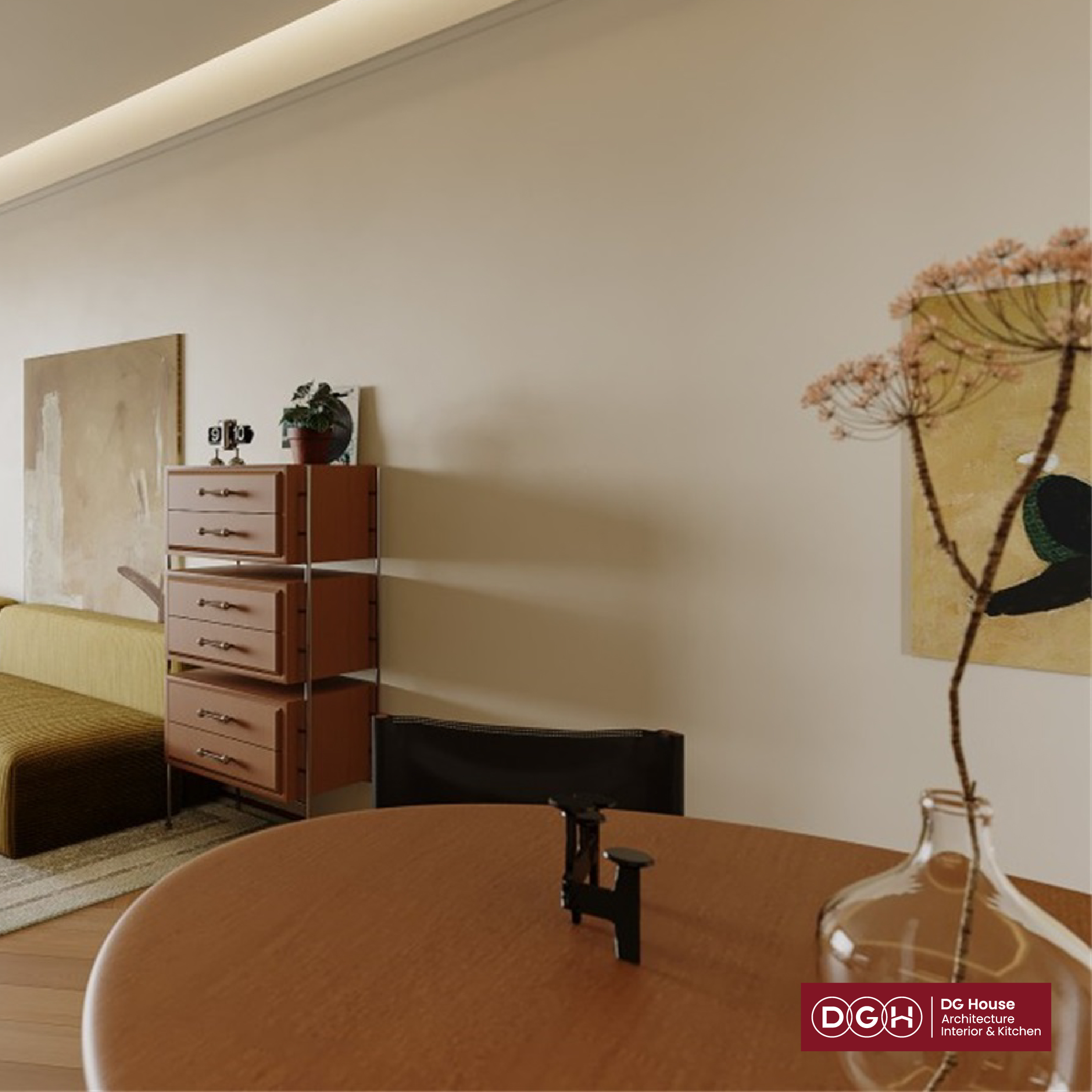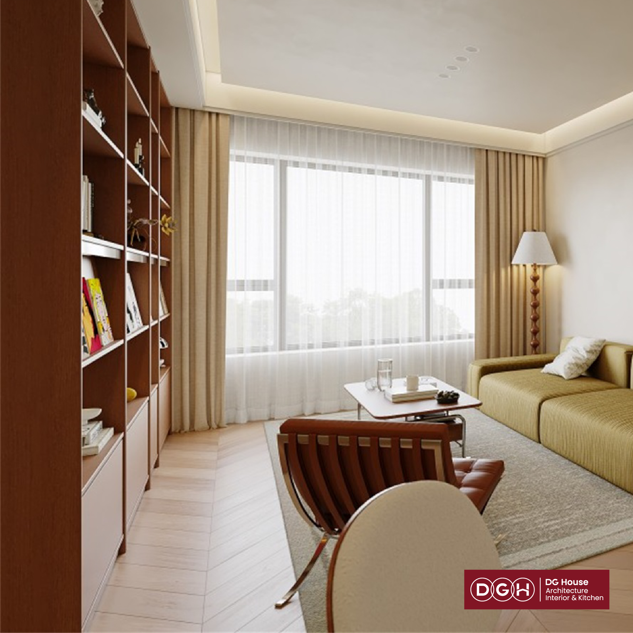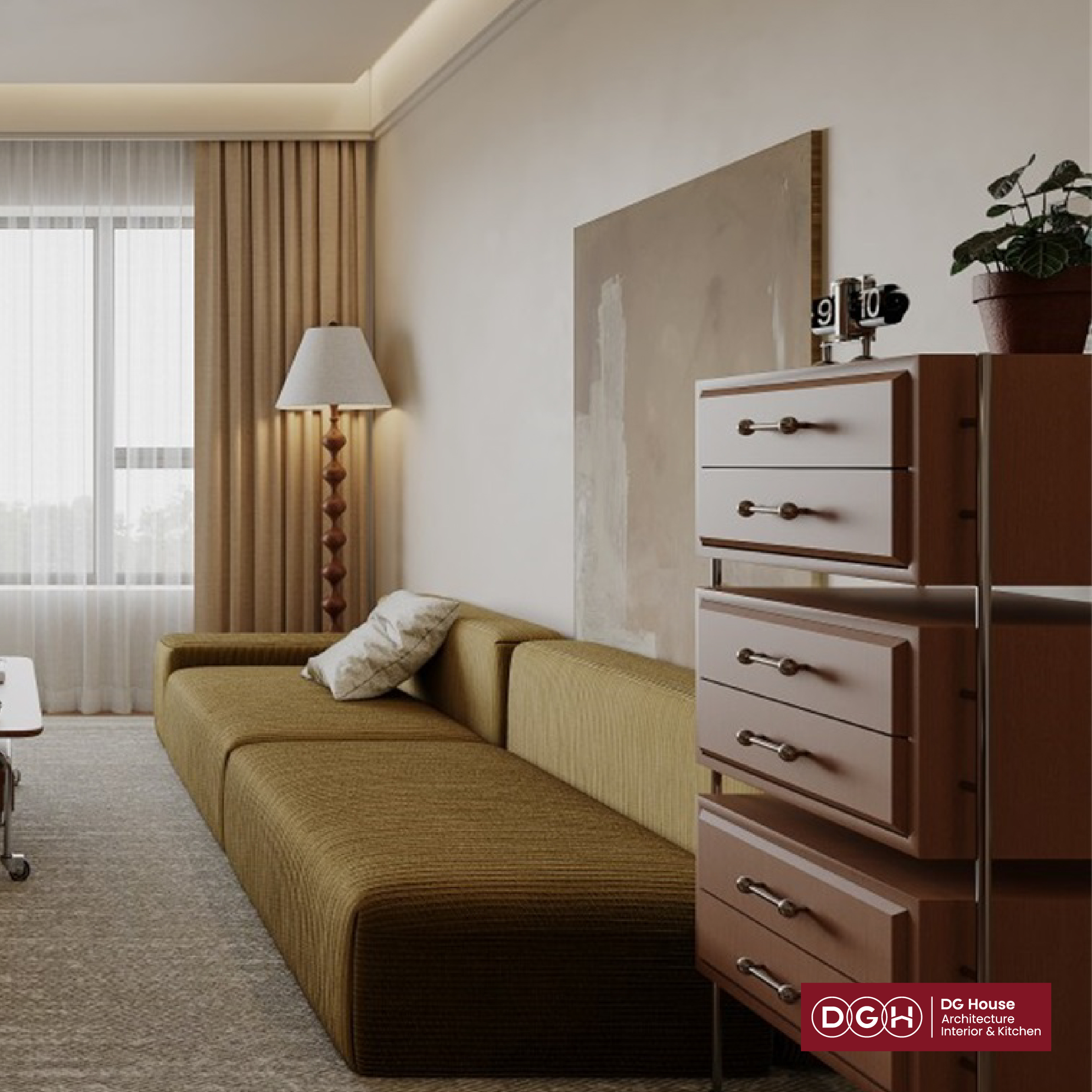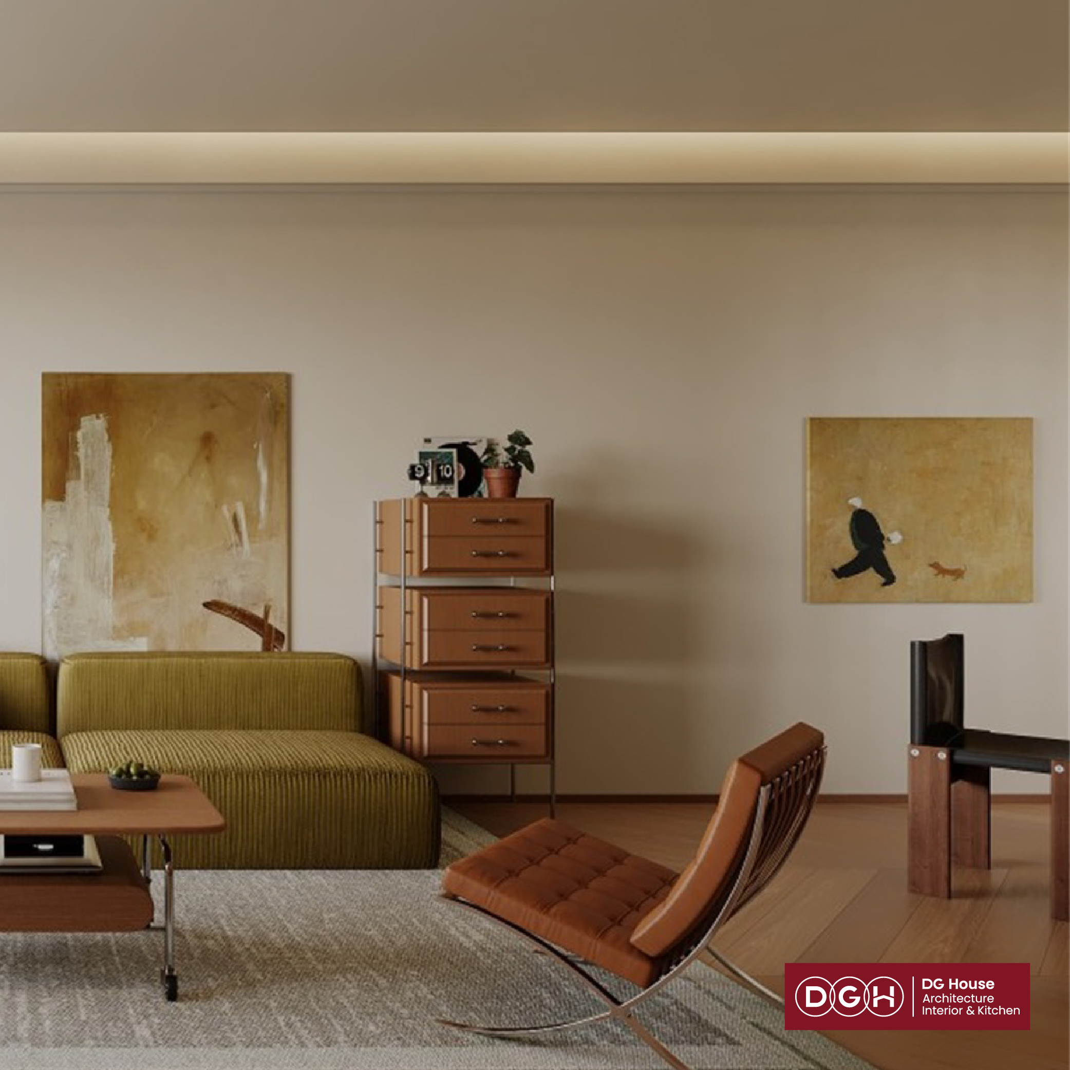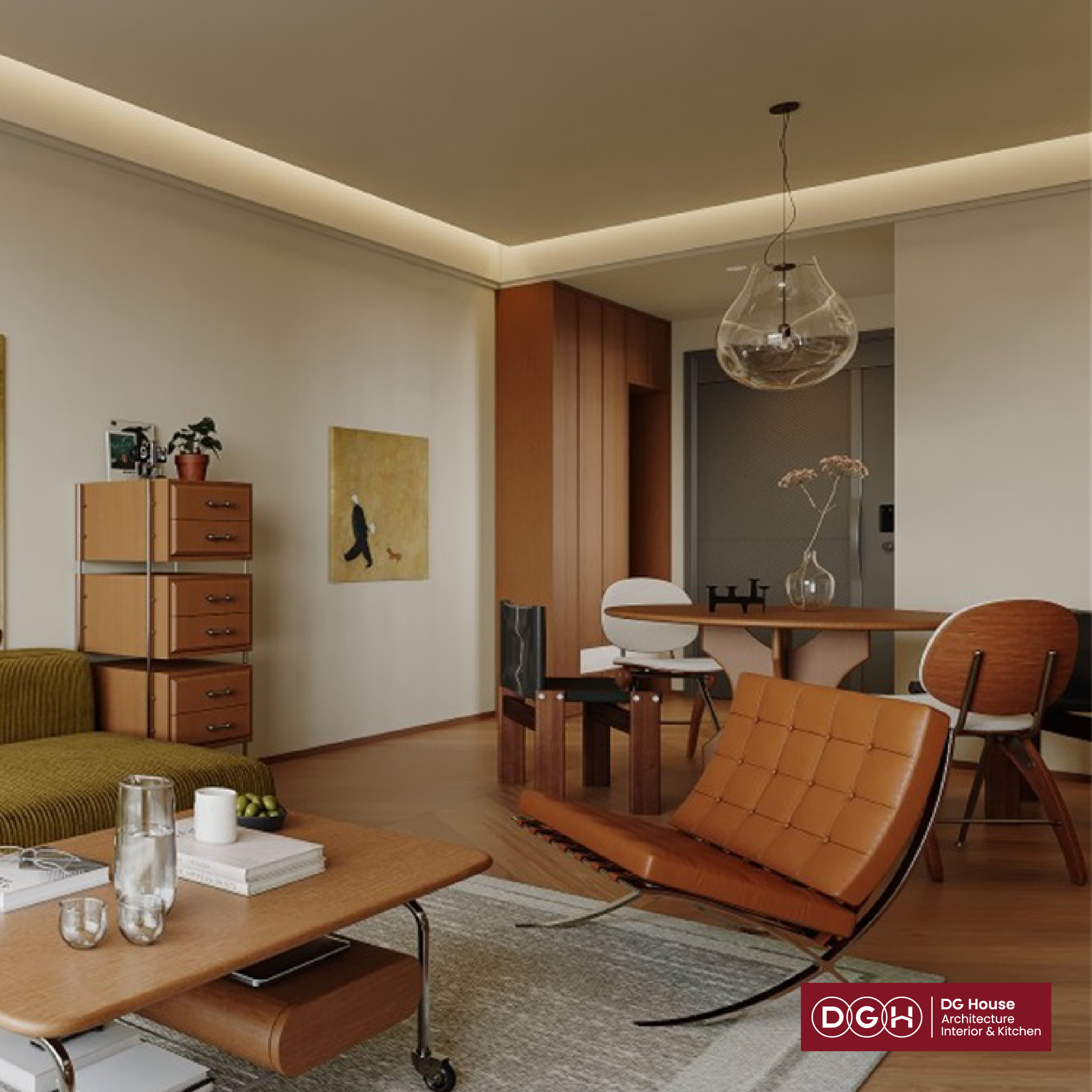 Với sự kết hợp hài hòa giữa nét hiện đại và cổ điển, mang đến không gian sống vừa tinh tế vừa gần gũi. Đặc trưng của phong cách này là các đường nét đơn giản, gọn gàng, nội thất có thiết kế thanh thoát, sử dụng nhiều vật liệu gỗ tự nhiên, da, kim loại cùng gam màu ấm áp như nâu, be, xanh olive hay vàng mù tạt. Cách bài trí tối giản nhưng vẫn đầy tính thẩm mỹ, tạo nên một không gian sang trọng, tiện nghi và giàu cảm xúc.