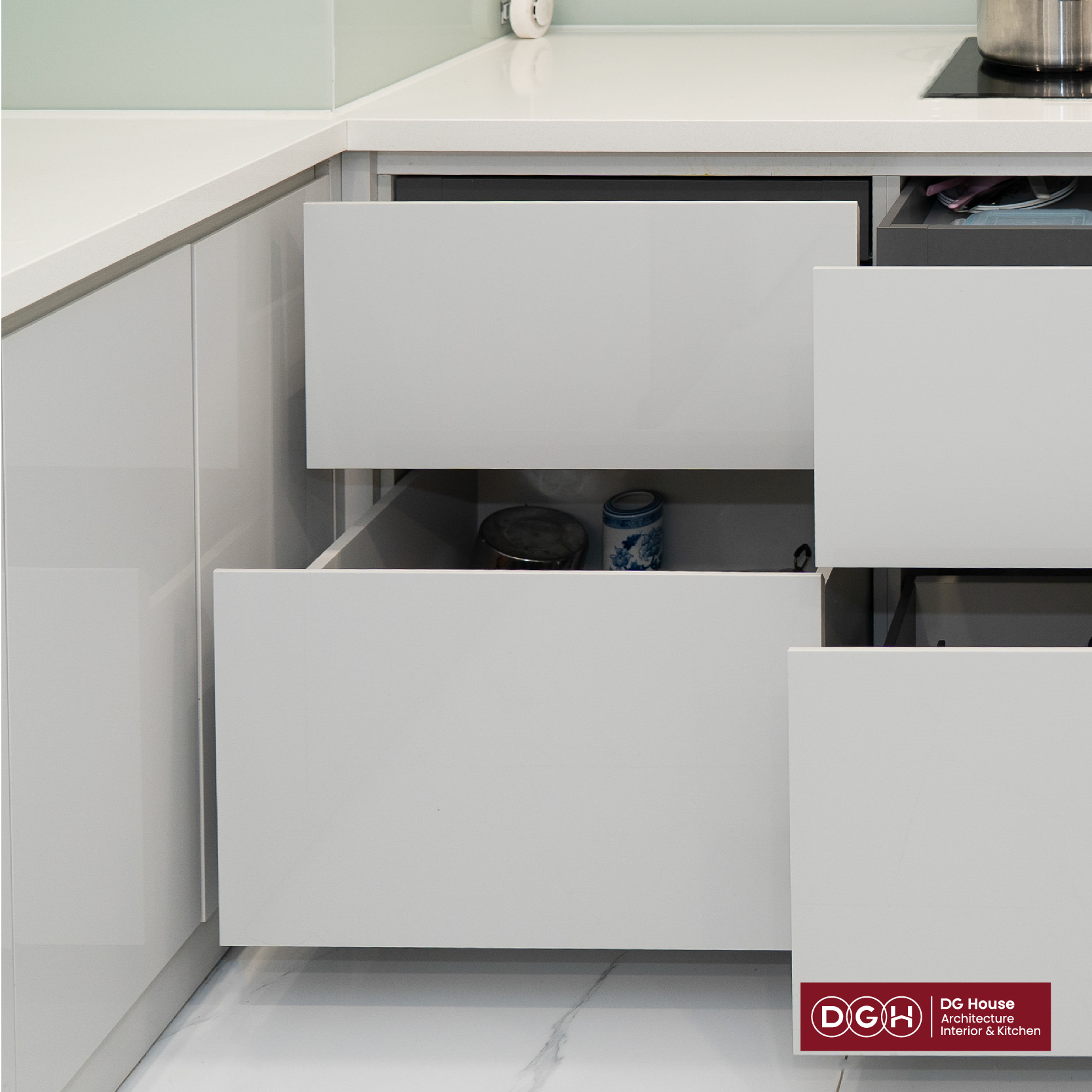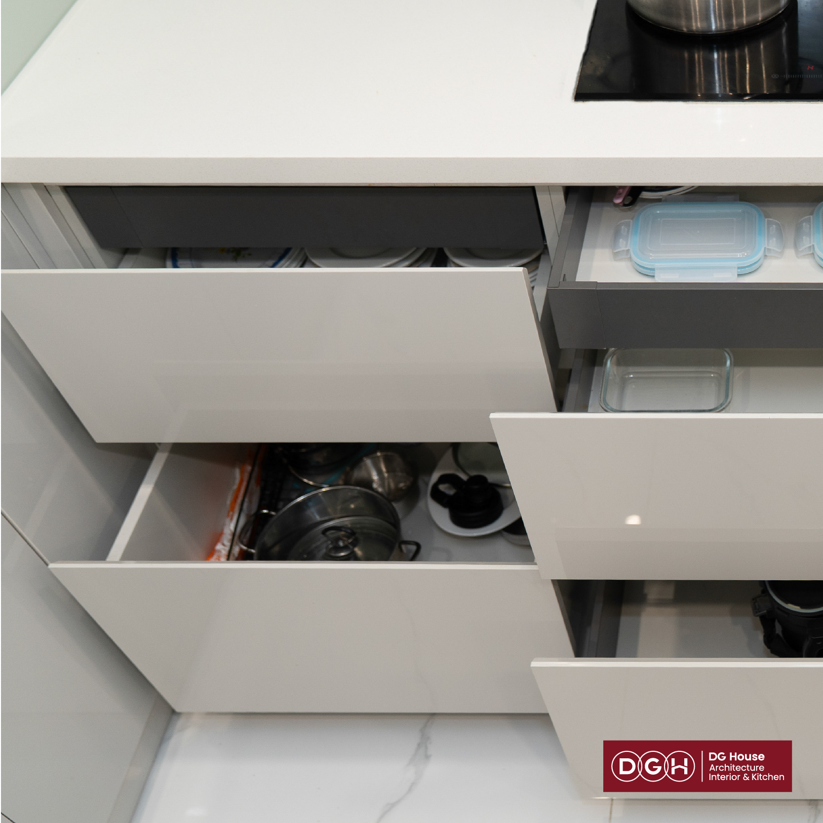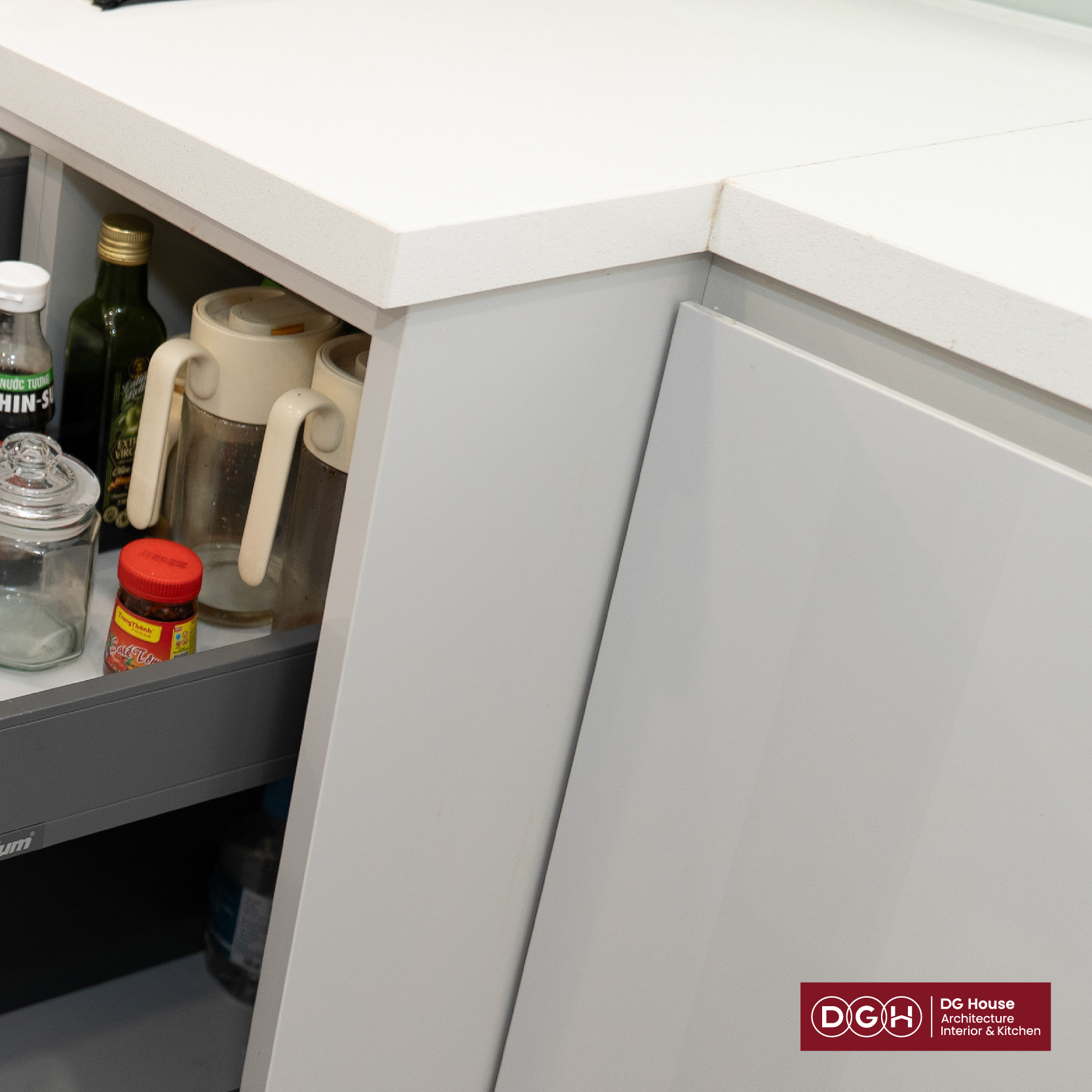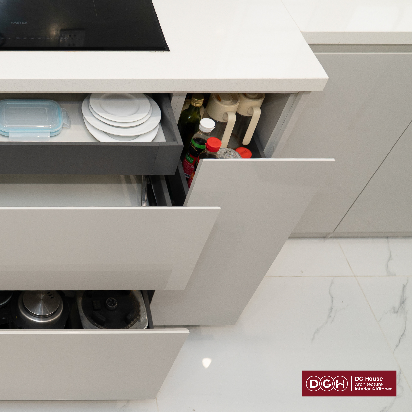 Không gian bếp hiện đại không chỉ đơn thuần là nơi nấu nướng, mà còn là điểm nhấn quan trọng trong thiết kế nội thất ngôi nhà. Với phong cách tối giản, gam màu trắng – ghi thanh lịch cùng hệ tủ bếp chữ L tiện nghi, căn bếp mang lại sự sang trọng, gọn gàng và truyền cảm hứng cho một cuộc sống hiện đại. Đây chính là lựa chọn hoàn hảo cho những gia đình mong muốn sự tinh tế và đẳng cấp trong từng chi tiết.