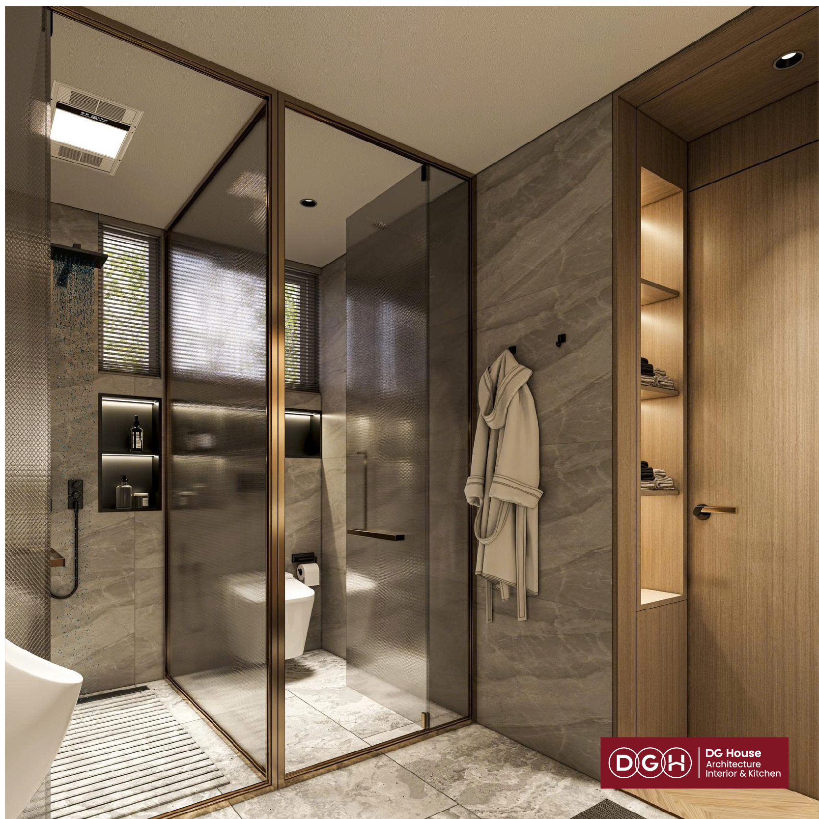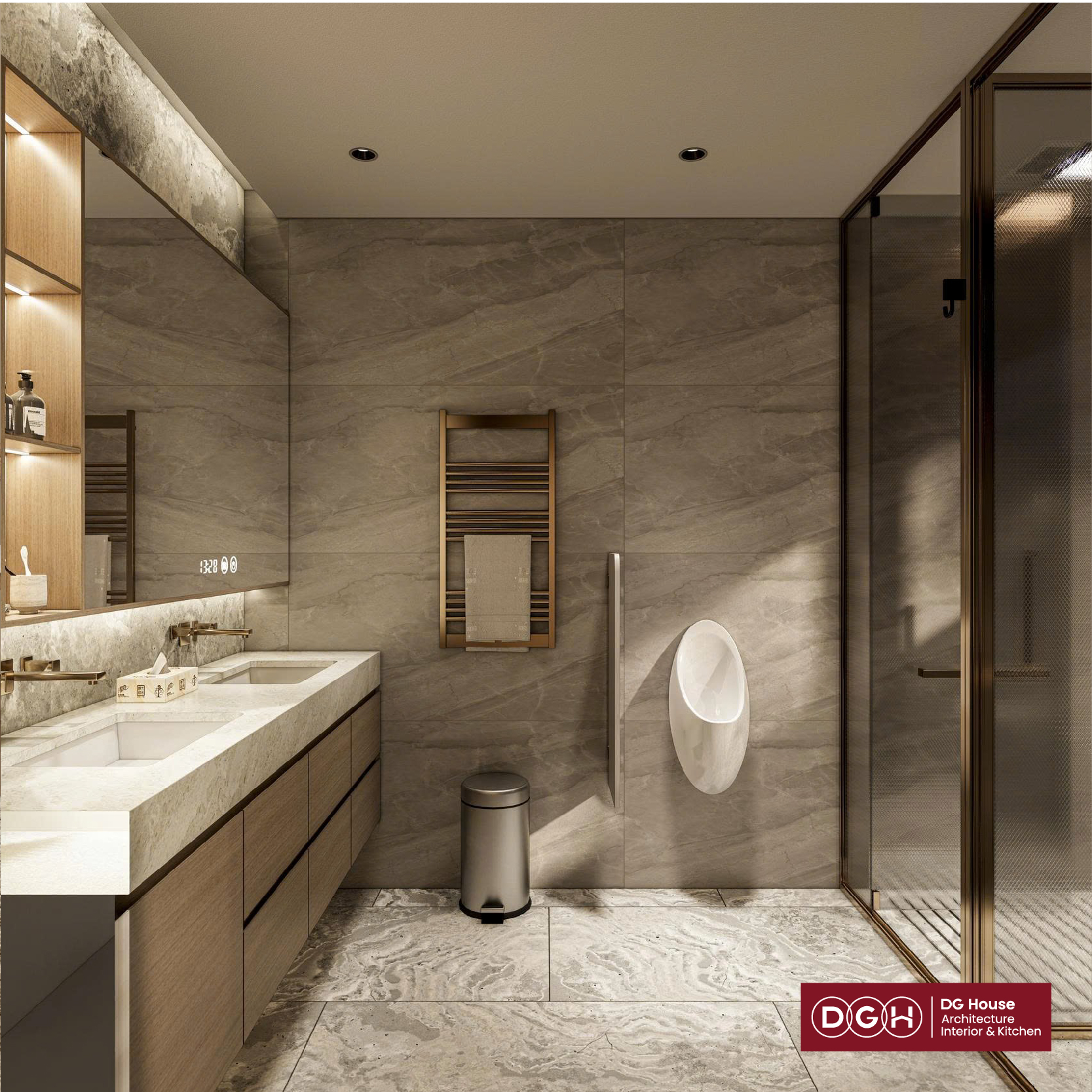 + WC Khép Kín : Được lát đá vân mây sang trọng, ngăn cách khu vực khô và ướt bằng vách kính cường lực, đảm bảo sự sạch sẽ và hiện đại.