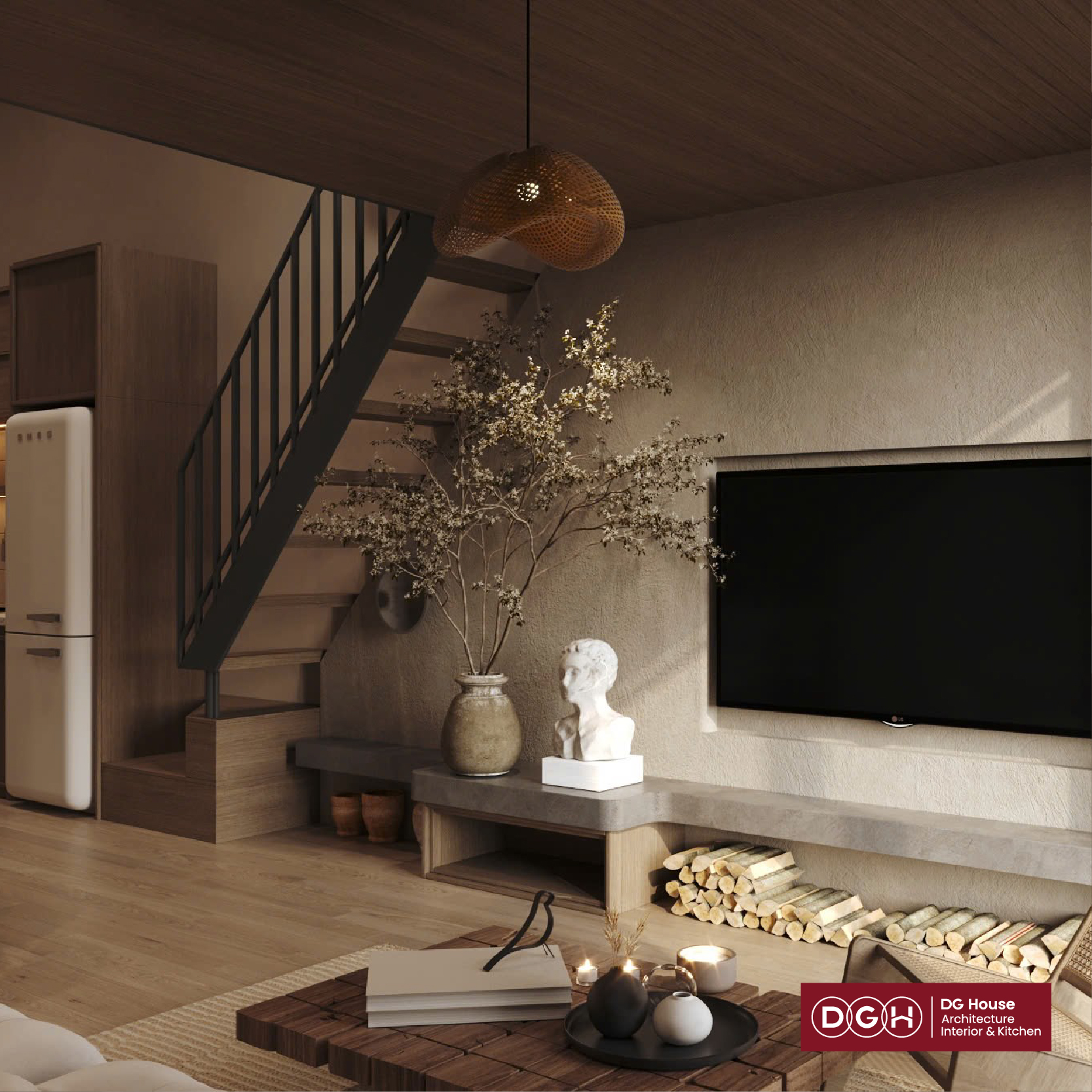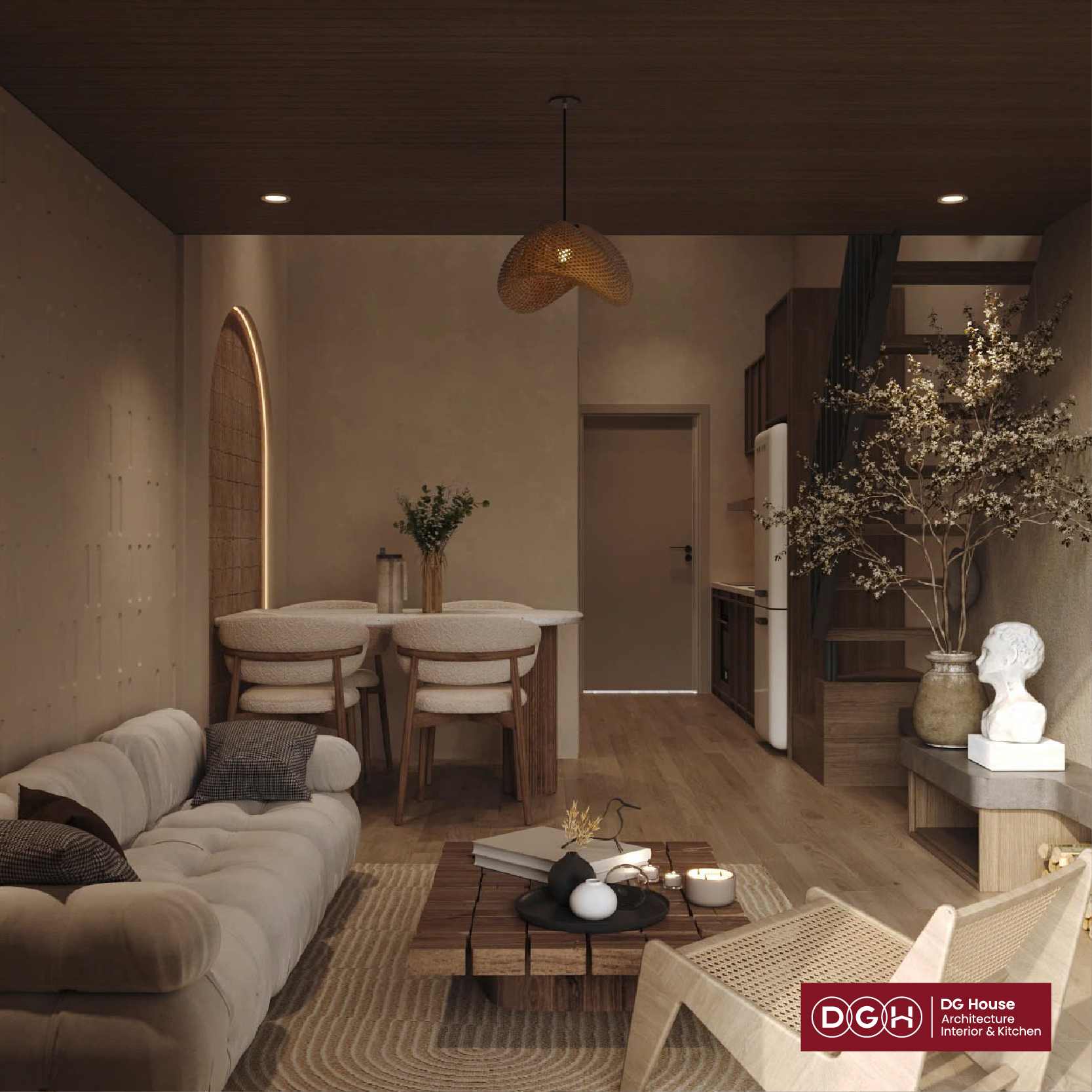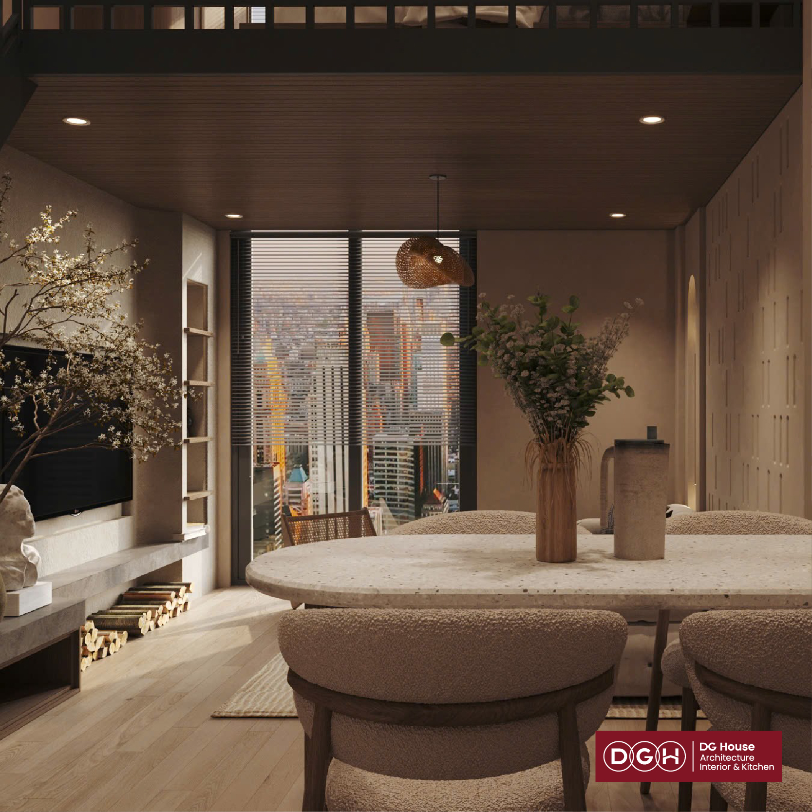 Dưới bàn tay của đội ngũ DG House, căn hộ 1 phòng ngủ này đã được "biến hóa" với thiết kế thông tầng độc đáo, giúp nhân đôi diện tích sử dụng mà vẫn đảm bảo sự thông thoáng tuyệt đối.