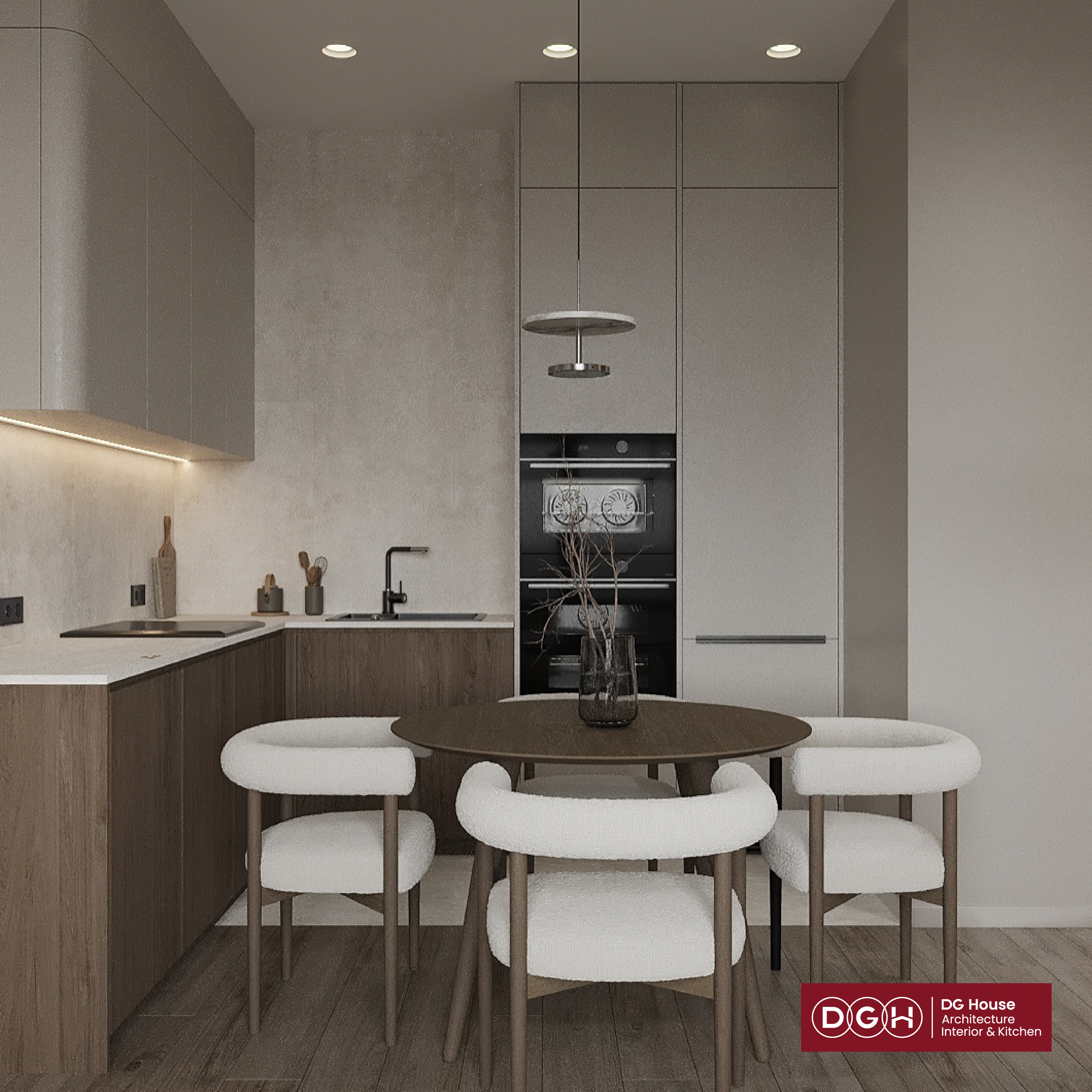 Không đâu thư thái bằng căn bếp nhỏ, nơi mùi hương của gỗ hòa quyện cùng ánh đèn vàng ấm áp. Thiết kế tối giản với những đường bo tròn mềm mại giúp mọi mệt mỏi như dừng lại sau lưng.