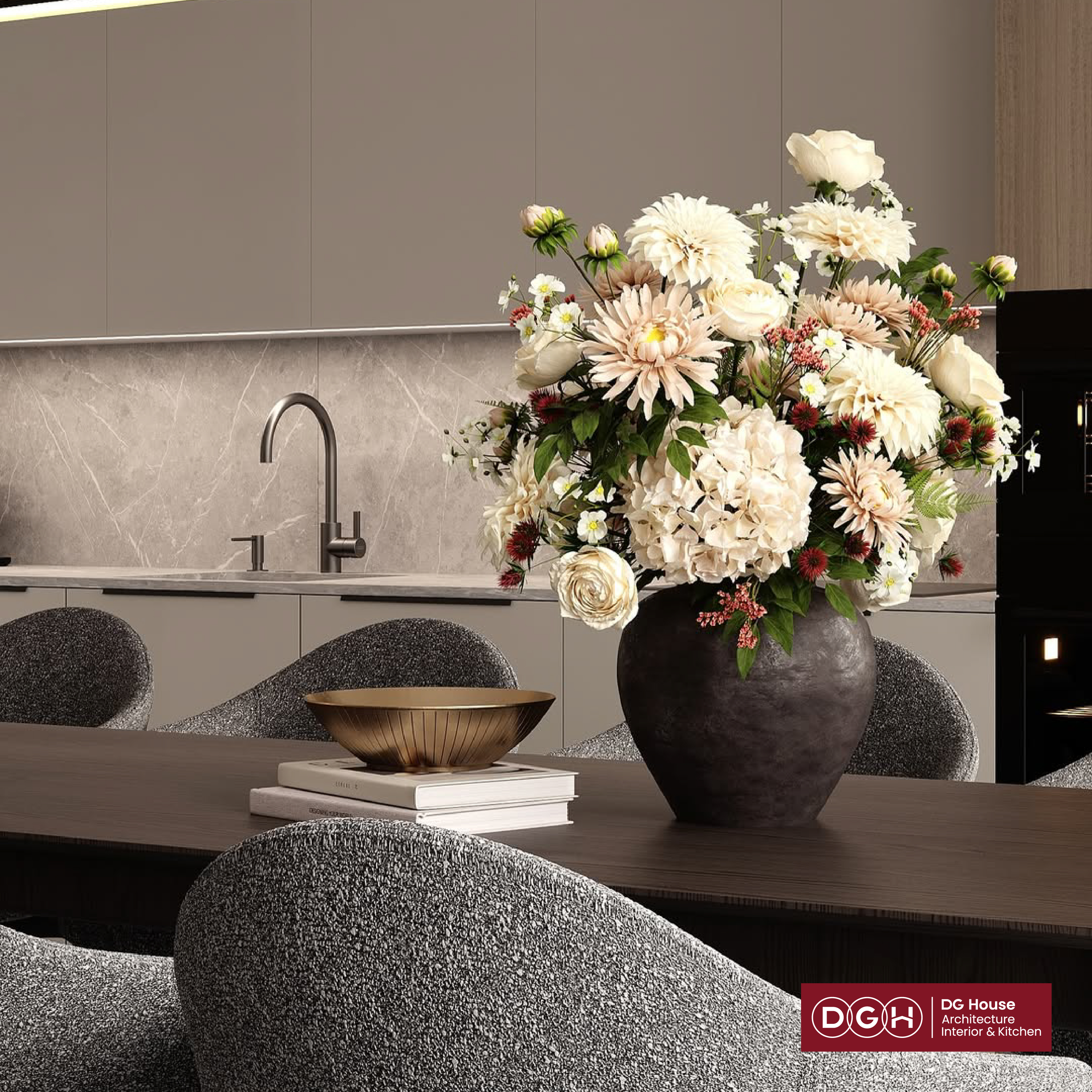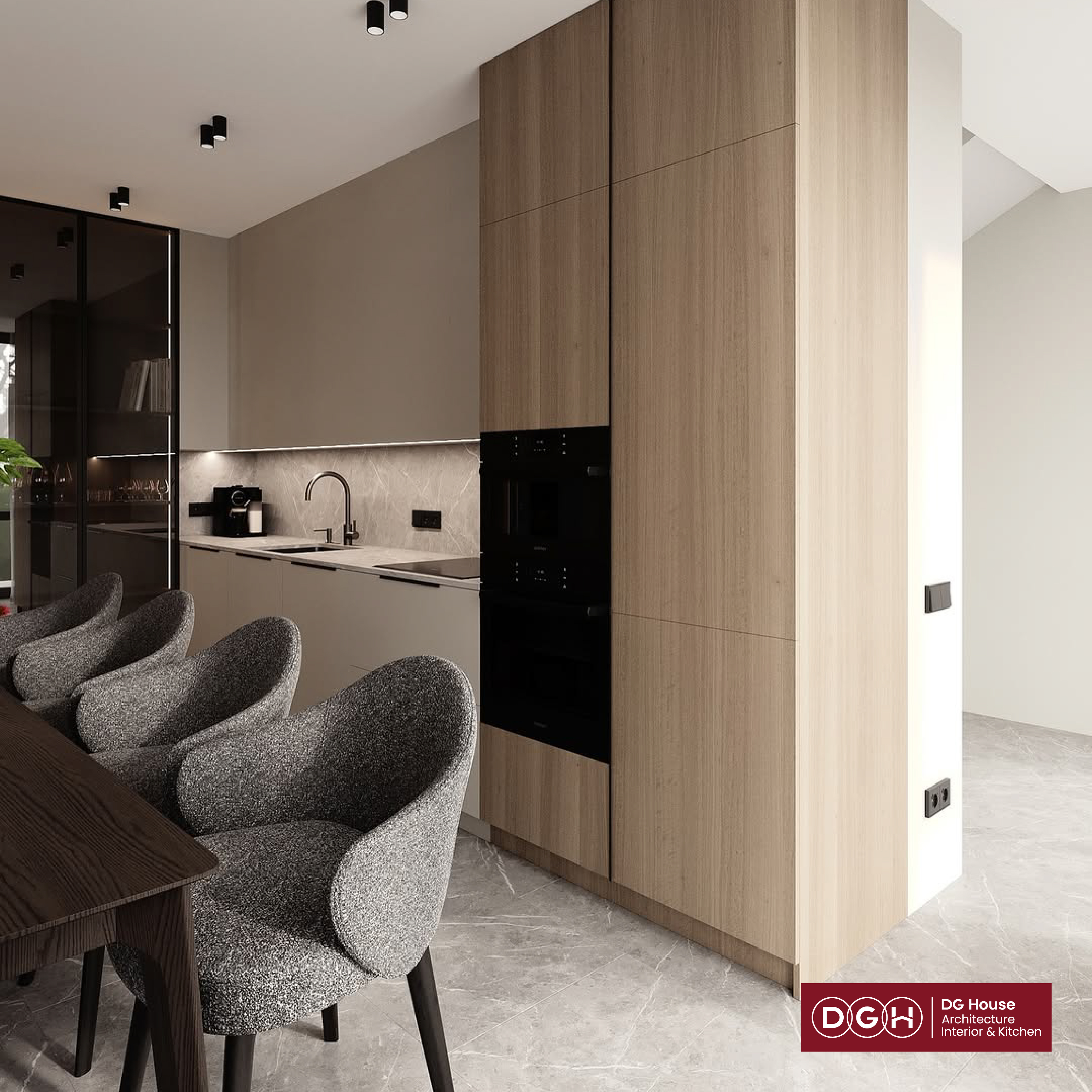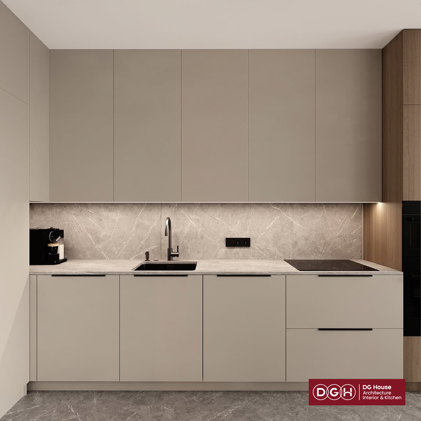 Không chỉ là nơi giữ lửa, căn bếp này là một bản giao hưởng của màu sắc trung tính và vật liệu cao cấp. Với sự kết hợp hoàn hảo giữa tông màu Beige ấm áp, đá vân mây sang trọng và ánh sáng vàng dịu nhẹ, chúng tôi mang đến một không gian: